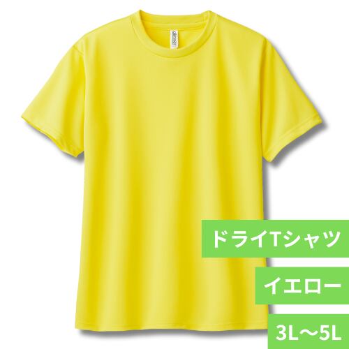 ドライTシャツ イエロー 3L~5L 1枚 無地 半袖 速乾 グリマー 4.4オンス