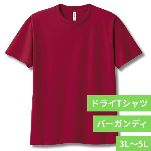 ドライTシャツ バーガンディ 3L~5L 1枚 無地 半袖 速乾 グリマー 4.4オンス