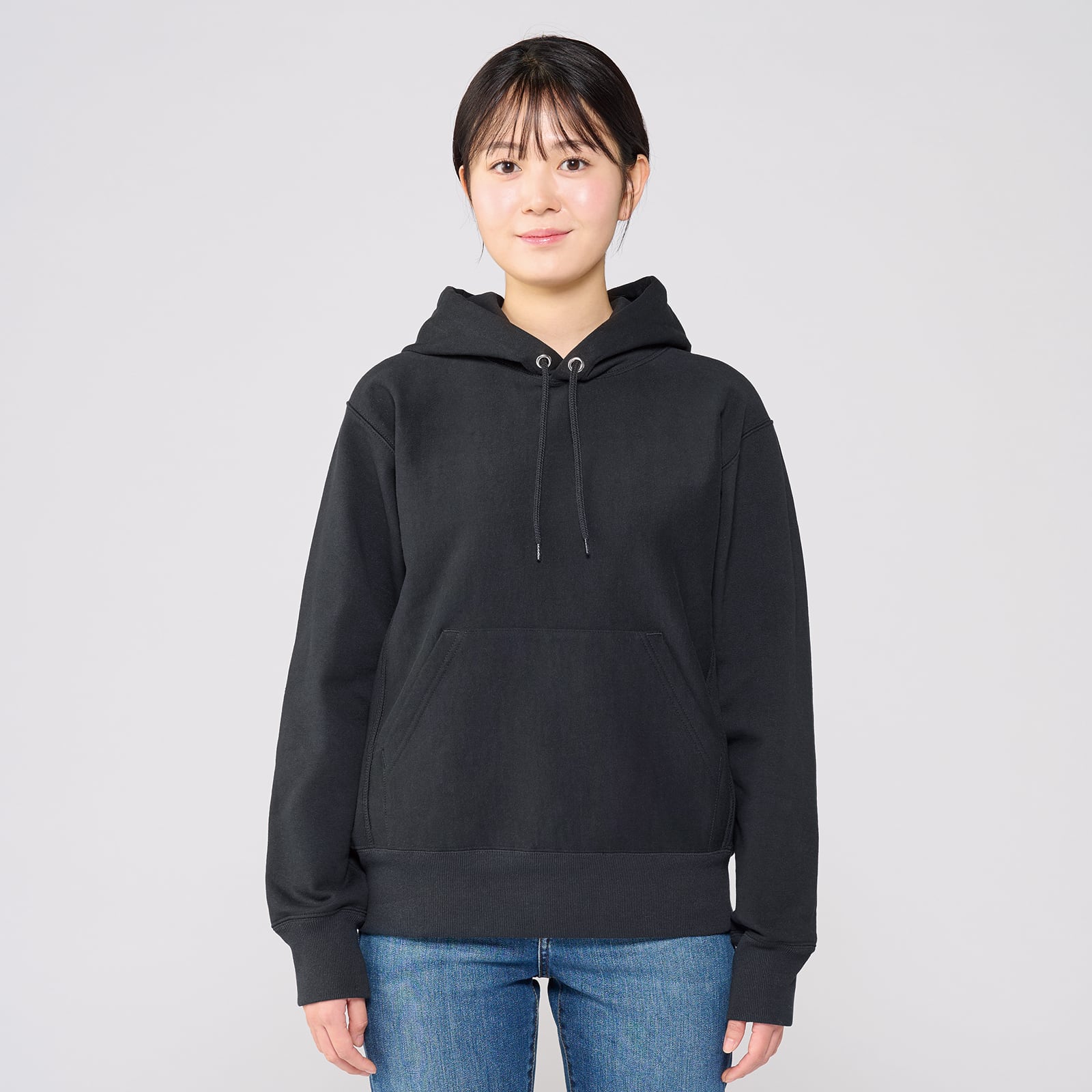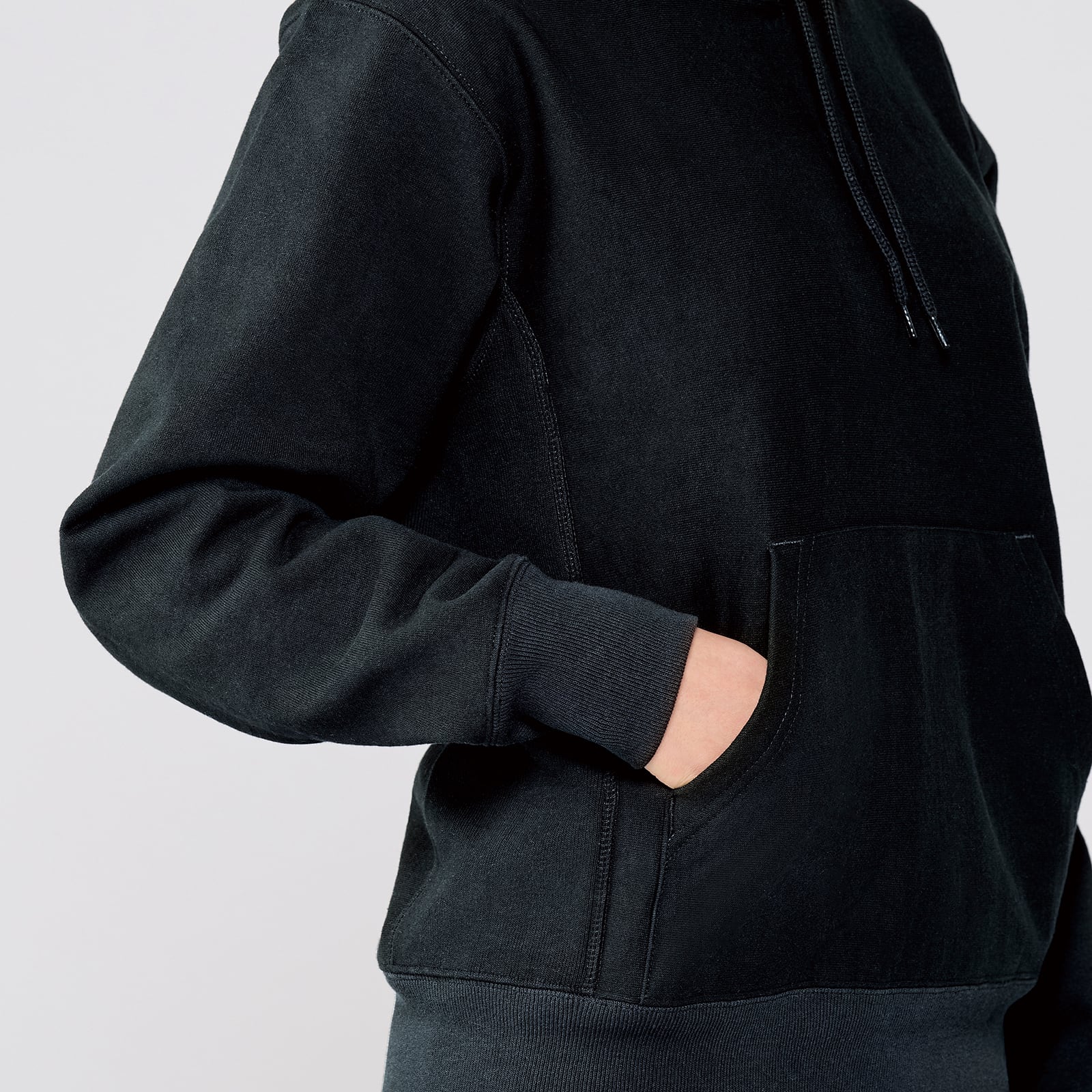 カンガルーポケットや脇のリブ生地がアクセントに