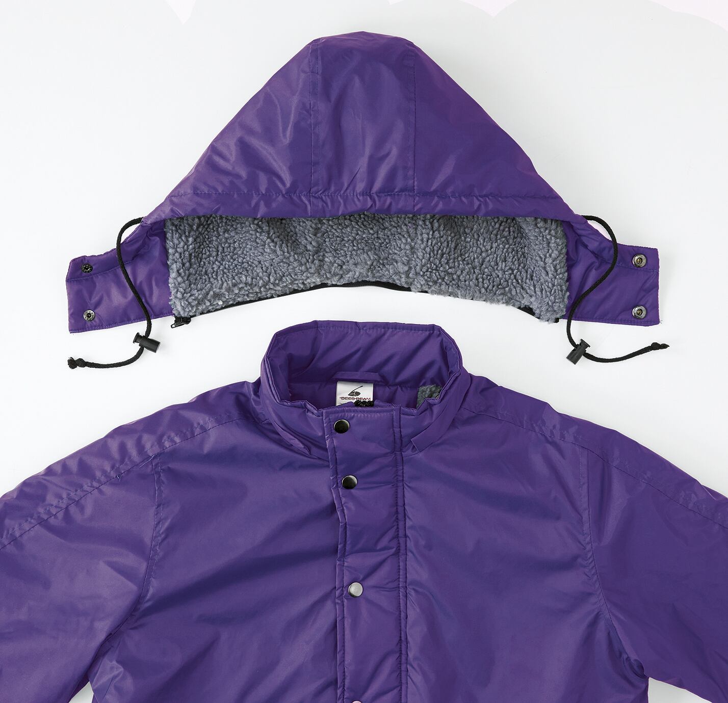 冬の屋外に最適なボア付きナイロンベンチコート。