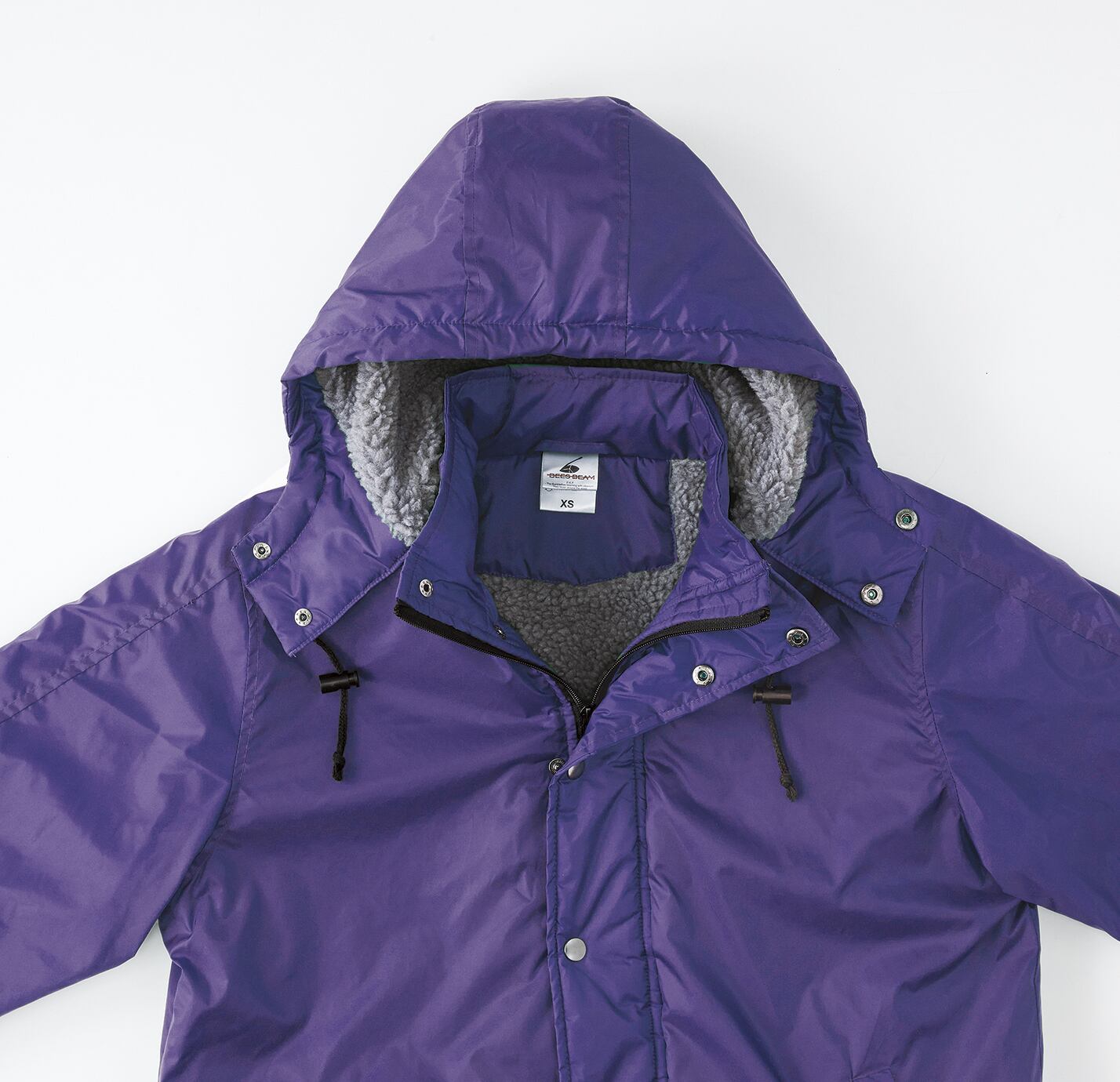 冬の屋外に最適なボア付きナイロンベンチコート。
